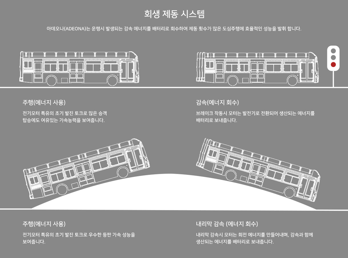 승객과 운전자의 안전과 함께 환경오염이 전혀 없는 100% 순수 전기버스로 환경을 보전하고 지키는 대중교통의 새로운 녹색 혁명을 만들어 갑니다.
