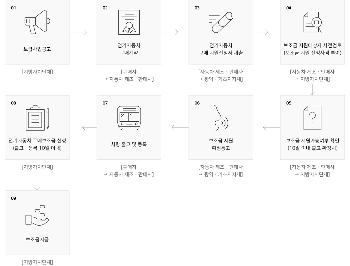 구매자는 차량구매대금과 보조금의 차액을 자동차 제조ㆍ판매사에 납부하고,자동차 제조ㆍ판매사는 지방자치단체(국비보조금+지방비보조금) 또는 한국환경공단(국비보조금)으로부터 보조금 수령
