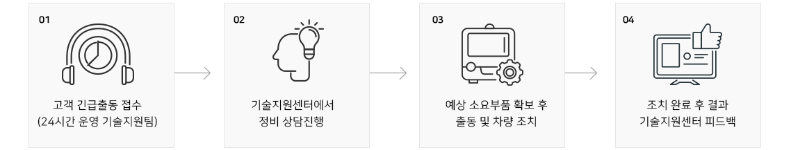 예비 부품 보급 차량교육 초기문제해결 운행 노선에 따른 최적화 예방정비 정비 기술 지원 |